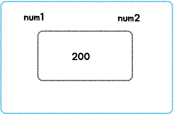 num1의 값도 200으로 같이 변경됩니다.